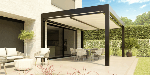 Modulable et personnalisable, cette pergola JMH Concepteur innove sous le soleil. Elle coulisse avec un doigt pour s’esc...