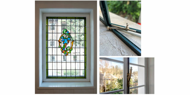 Dans l’idéal, celui-ci doit toutefois s’adapter aux châssis existants de la fenêtre d’origine ; dans le cas d’une protection patrimoniale, transposer un double ou un triple vitrage confine souvent à l’impossible pour leur épaisseur non proportionnée à ces cadres. Les verres float actuels ne présentant pas par ailleurs, les surfaces ondulées et structurées des verres étirés.