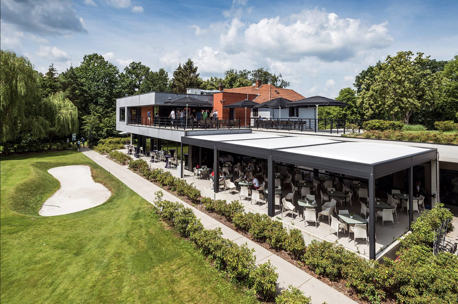 Pour rénover la zone externe de la brasserie et pouvoir l’exploiter toute l’année, les nouveaux propriétaires du golf club ont contacté le revendeur KE Boflex.