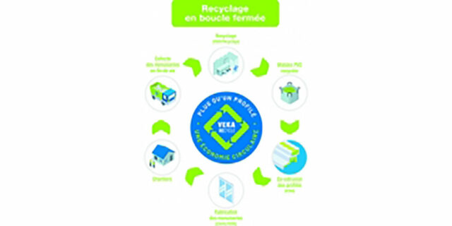 Mentionnons par ailleurs que VEKA propose la ligne VEKA REcycle, issue de la gamme 70 mm VEKA. Cette ligne spécifique regroupe une sélection judicieuse de profilés 70 mm qui permet la composition de menuiseries intégrant dans leur cadre jusque 70 % de matière recyclée fin de vie (pré et post-consommation). Cette ligne bénéficie de FDES spécifiques.