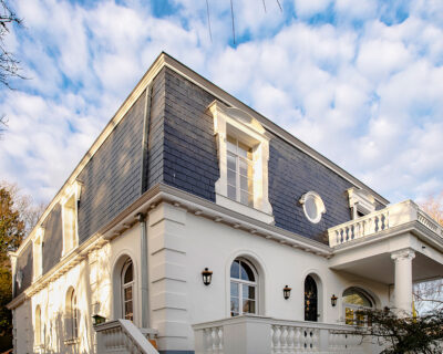 Nommée « capitale de l’Art nouveau » pour son millier de bâtiments épousant ce style, Bruxelles abrite nombre d’entre eux classés au patrimoine mondial de l’UNESCO. Ici, la villa, plus discrète, mêle quelques éléments Art nouveau (fenêtres cintrées, ornements floraux) et influences stylistiques variées (œils-de-bœuf, balustrades ajourées).